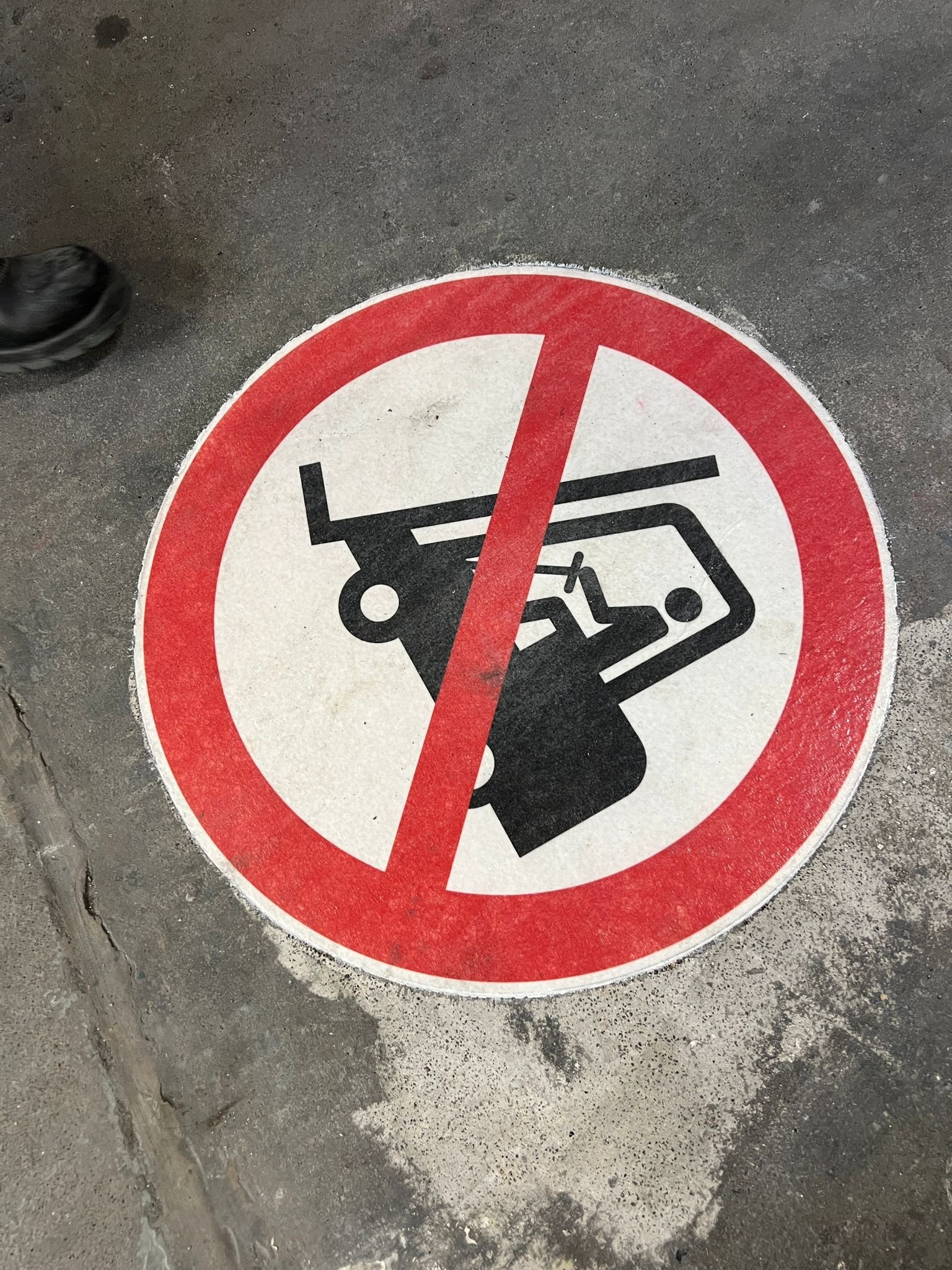 De pictogrammen worden dmv een epoxy-coating op vloeren of muren gelamineerd.